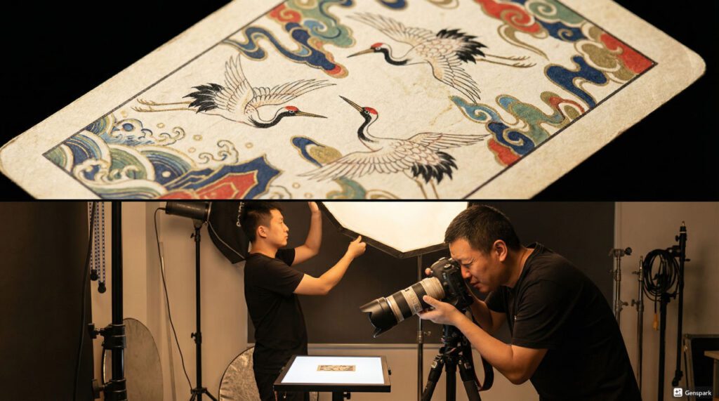 - 设计展示:采用 “旋转镜头 + 微距” 拍摄扑克图案,清晰呈现国风系列的工笔线条、亲子系列的卡通形象,突出 “创意设计” 优势;